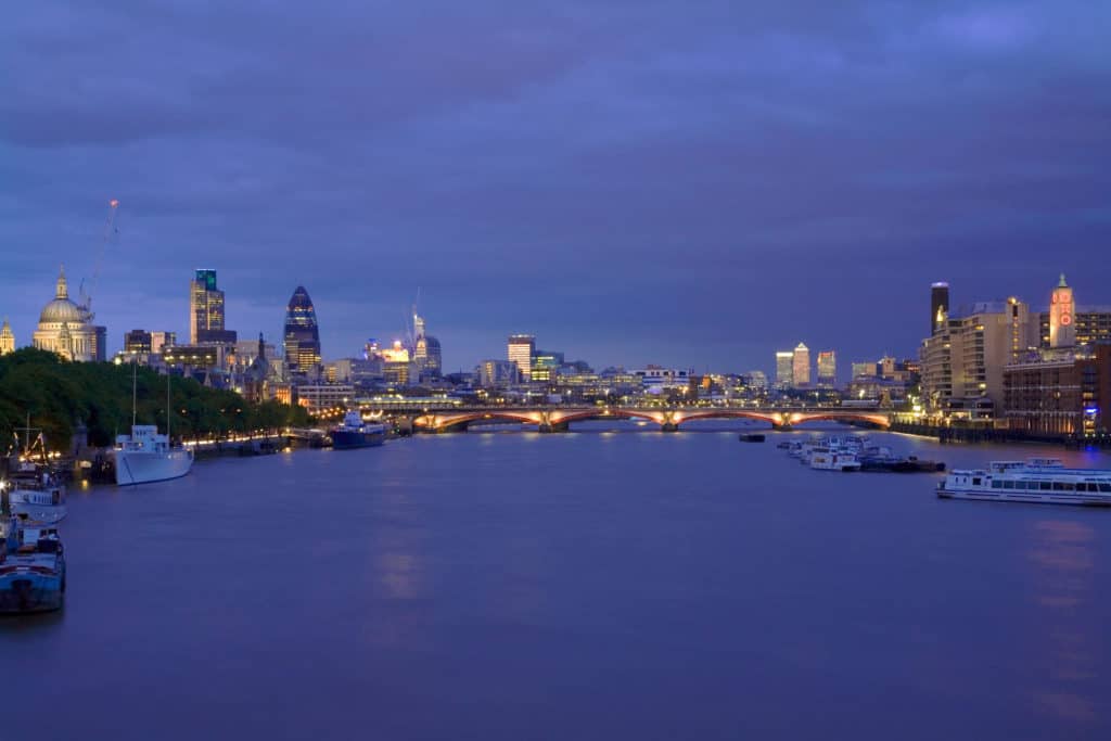 London at twilight, looking downstream along the River Thames with St. Pauls Cathedral and The City finance district on the left, Docklands’ Canary Wharf skyscraper in the distance and the Art Deco style Oxo Tower on the right2. By whom was London founded?