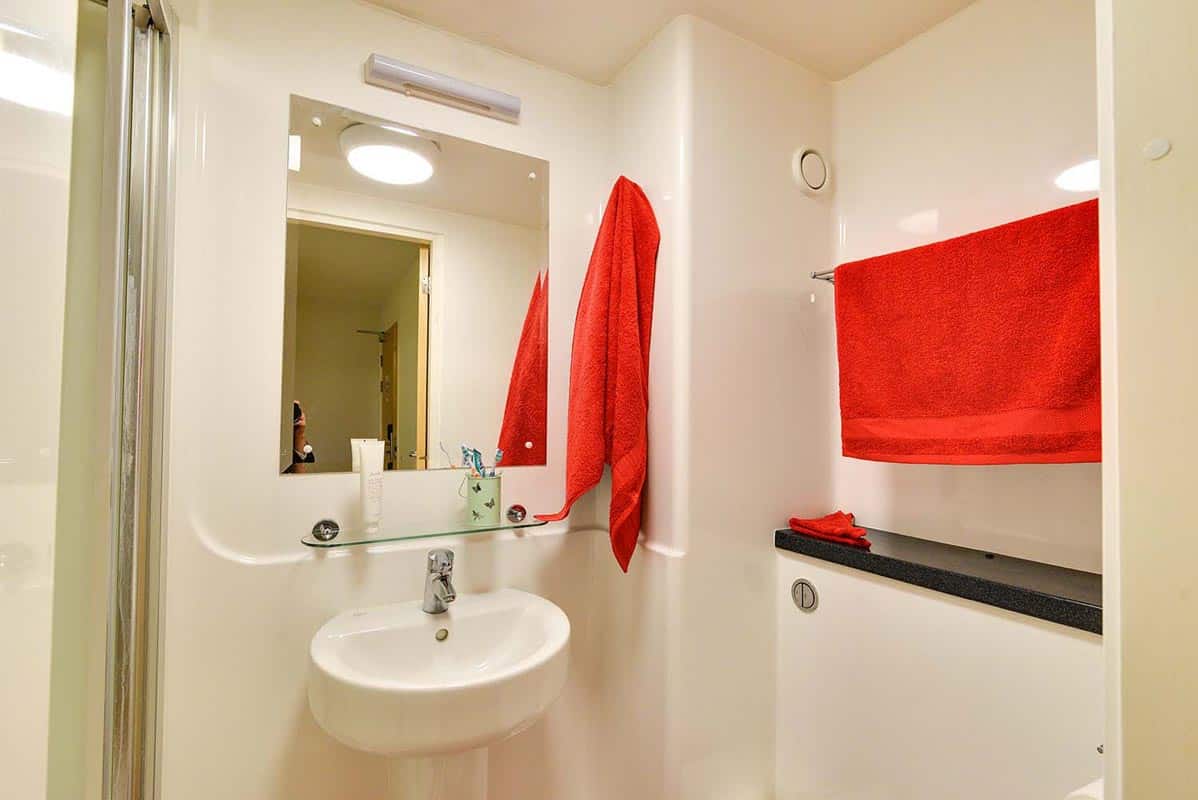 Both rooms have private en-suite bathrooms. The difference is that studios have cooking facilities within the room, while the single en suite rooms have access to a shared kitchen.