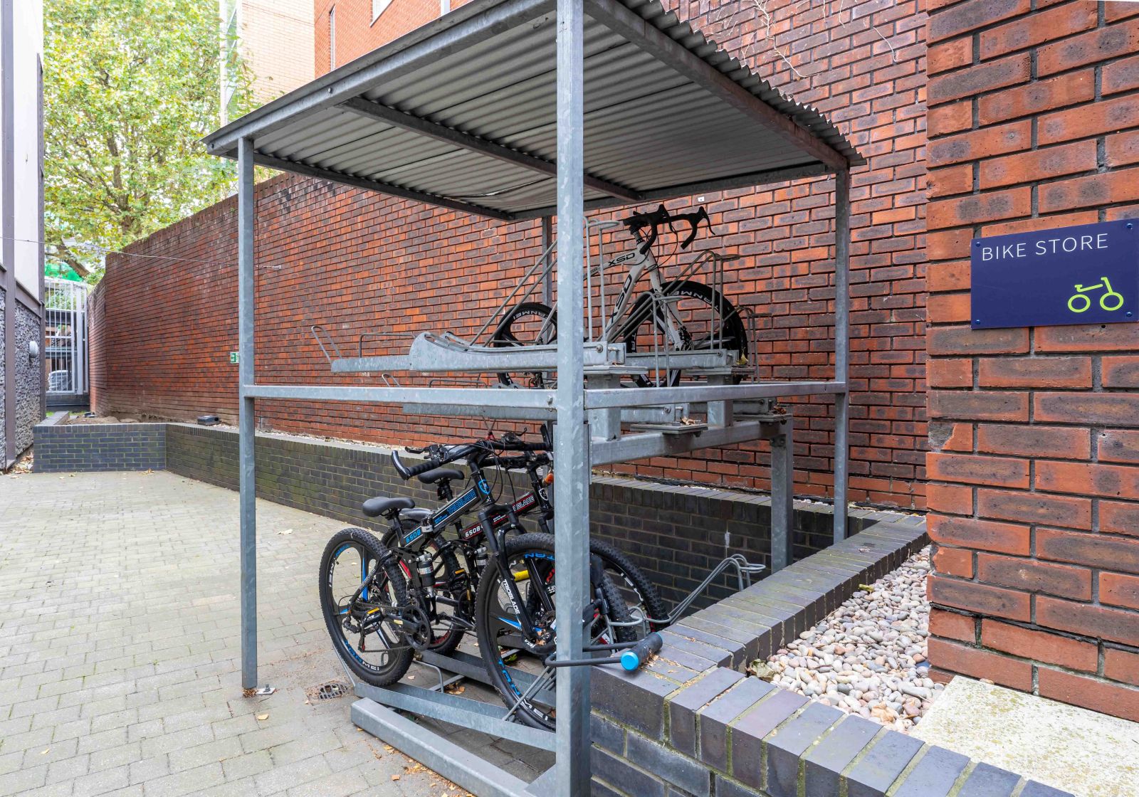 You can choose between en suite rooms with a shared kitchen or self-contained studios. The building has a courtyard, which is a nice change from being stuck indoors and useful for getting fresh air without leaving the site. There’s also a free gym, a games console booth, social spaces and laundry facilities. Bike storage is available if you prefer cycling. Bills, Wi-Fi and contents insurance are all included in your rent, with 24/7 security.