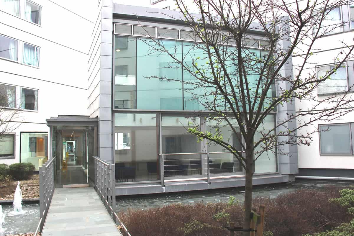 The Waterloo residence is a modern architectural award-winning building offering both single and twin en-suite rooms. Rooms come equipped with a wardrobe, drawers, a sink with vanity unit and a mini-fridge. They are arranged around a central courtyard containing a pool and fountain which reflect light and produce a gentle white noise sound, providing calm and tranquility in one of the busiest and most popular areas of London. In addition to the water garden, there’s a TV room, bicycle racks and a quiet study area perfect for catching up on coursework or revision.