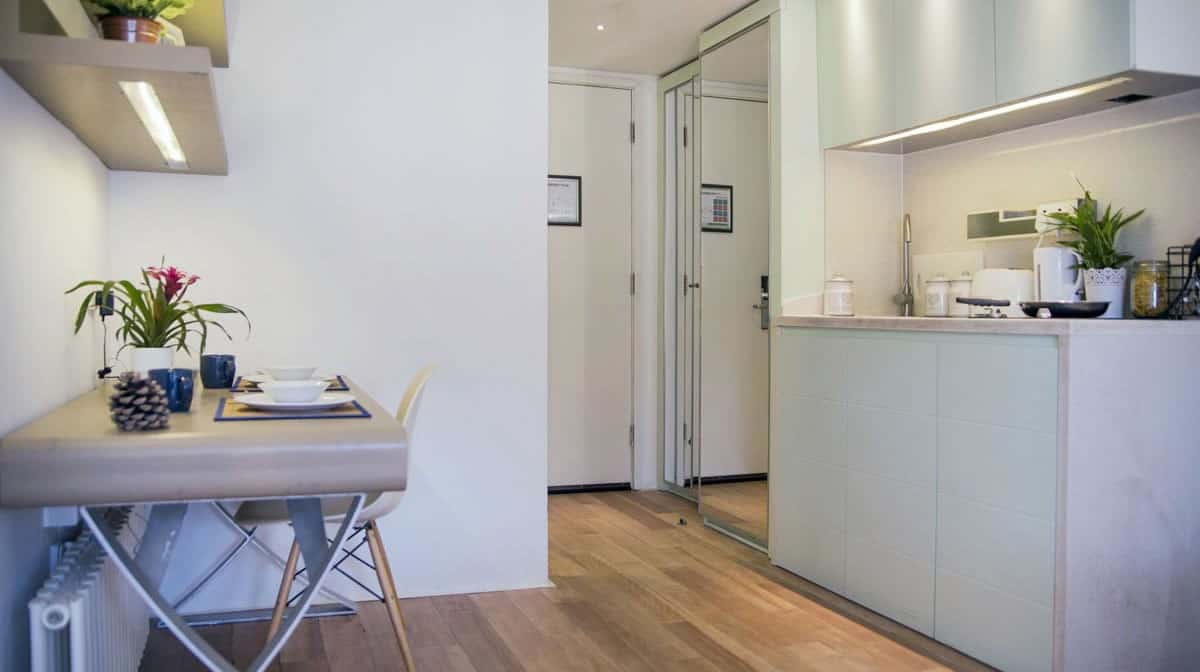 All bedrooms are studio en-suite rooms with rain-effect showers. Each studio is equipped with a private kitchenette, a microwave and a 100-litre fridge/freezer. There are luggage storage facilities for early arrivals. Nearby there is a large choice of sports facilities, gyms and Regent’s Park (a runner’s paradise), is just a short jog away.