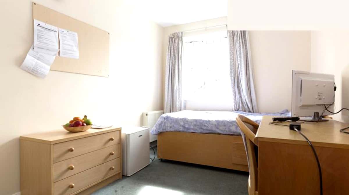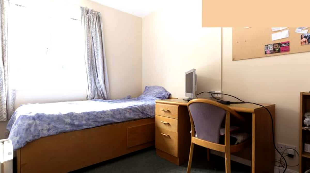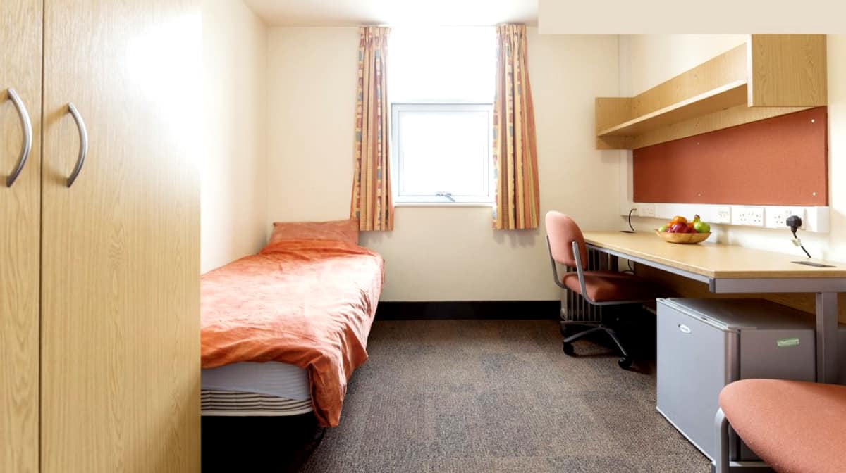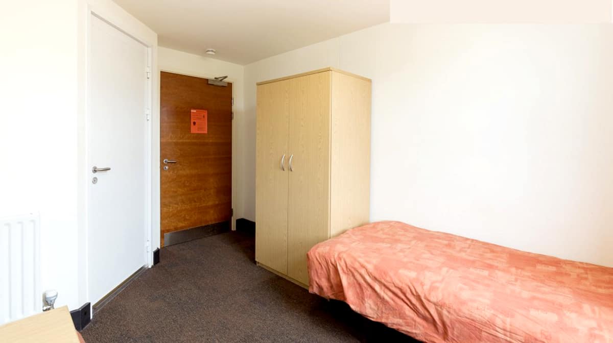 This is a single non en-suite room measuring around 12m². The room has a comfortable single bed, a wardrobe, drawers and a sink with a vanity unit. Bathrooms are shared with other rooms on the same floor. There is free Wi-Fi in each bedroom and throughout the building. Bed linen and basic cleaning is included. You will also have access to the communal living and kitchen areas.