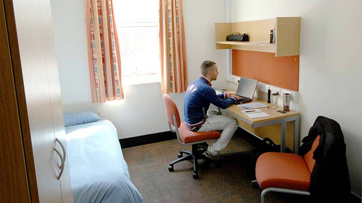 Completely private room, with quality bed, wardrobe, drawers and sink with vanity unit. Davies Court also provides en suite singles, which includes your own private toilet and shower.